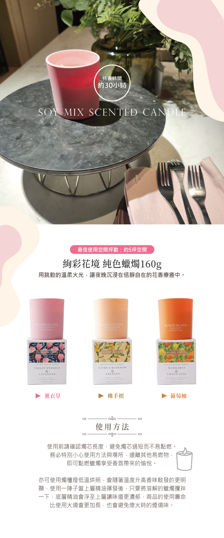 絢彩花境 純色蠟燭160g(薰衣草/葡萄柚/橙花香)