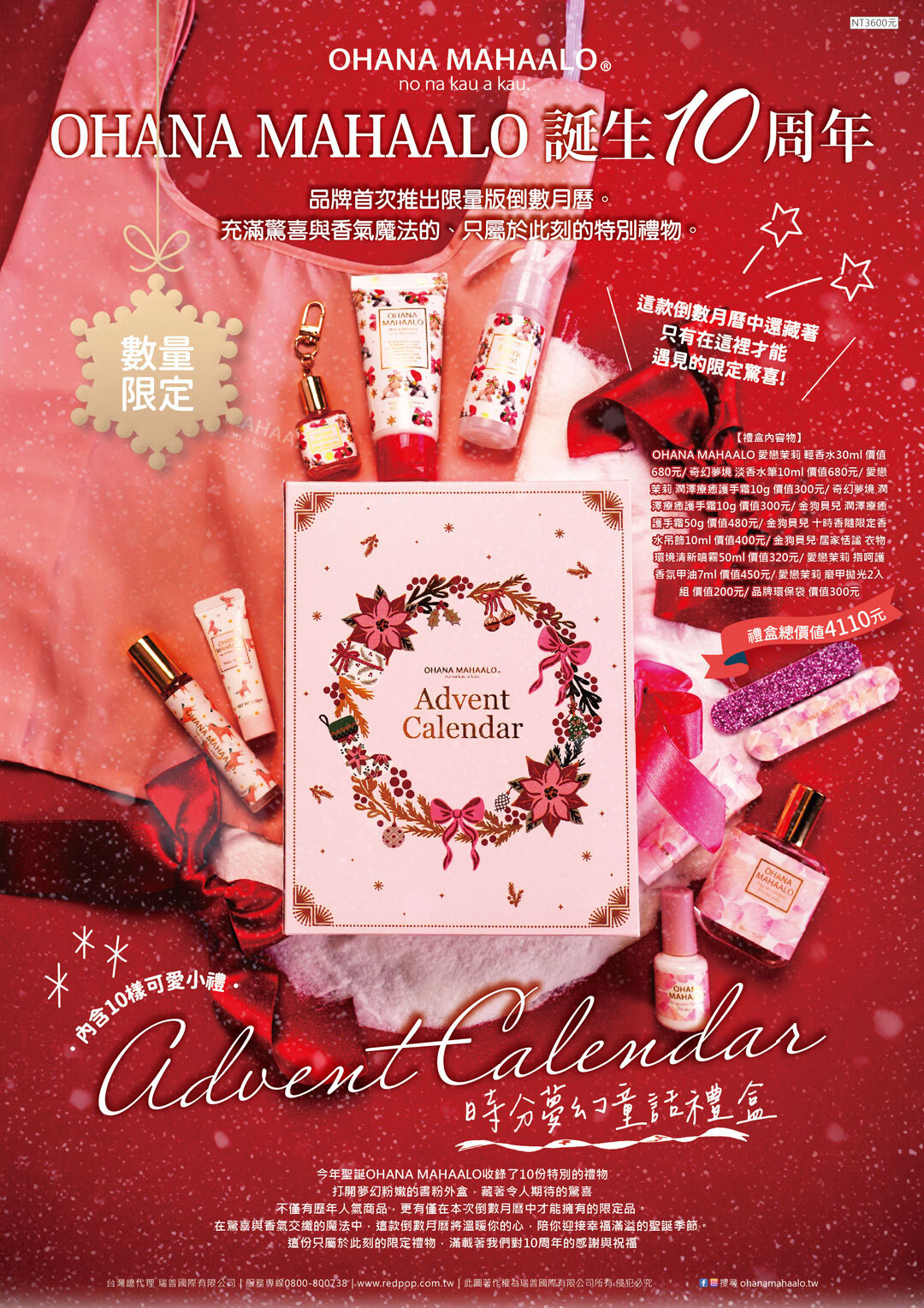 2025年對OHANA MAHAALO來說是特別的一年,迎來了品牌誕生10周年的紀念時刻,為了慶祝這個重要的年份,並向一路支持我們的大家表達感謝之意,我們將首次推出品牌專屬倒數月曆禮盒