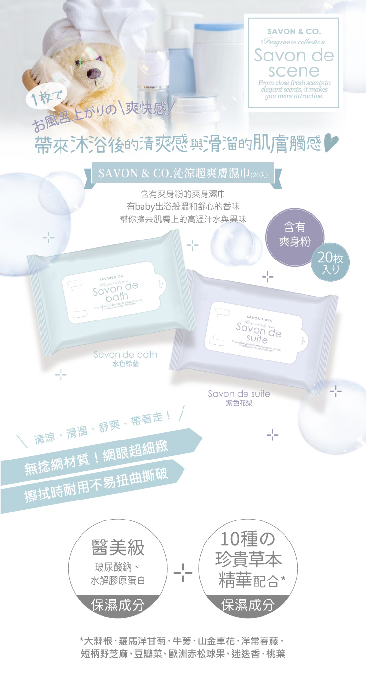 含有爽身粉的爽身濕巾 醫美級保濕成分